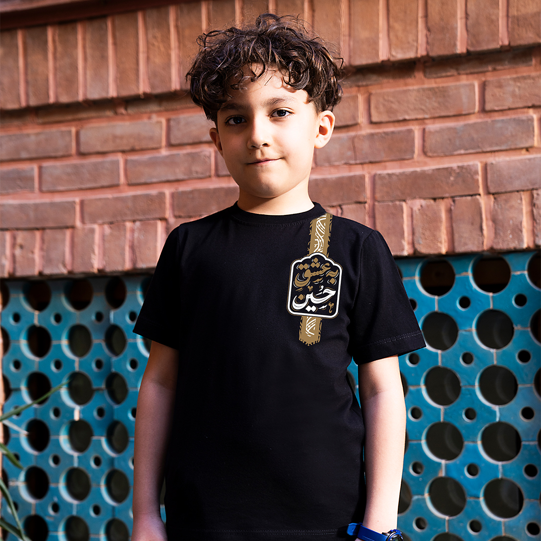 خرید عمده تیشرت مشکی پسرانه طرح به عشق حسین بزرگ | بچگانه (12 تایی)بسته 12 تاییBlack T-shirt with the design of "Be Eshgh Hossein"