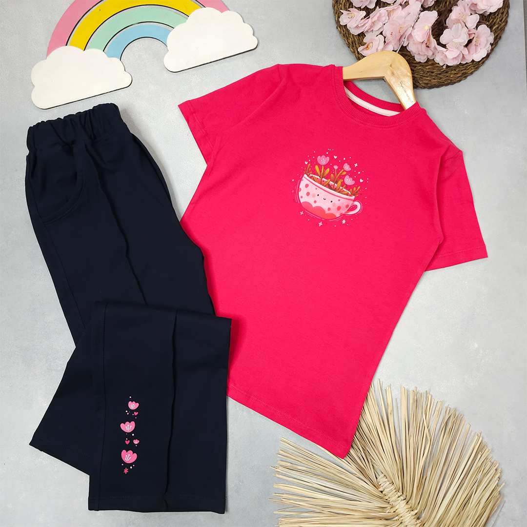 دیدگاه کاربرانGirls' T-shirt and pants set with floral cup design
